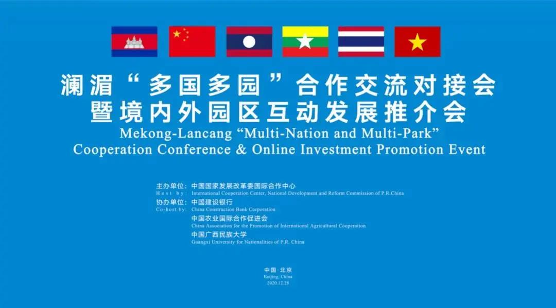 為落實瀾滄江—湄公河合作第三次領導人會議共識,推動瀾湄“多國多園”合作取得實質性進展,2020年12月28日,由國家發展改革委國際合作中心聯合有關單位共同主辦的瀾湄“多國多園”合作交流對接會暨境內外園區互動發展推介會以線上線下結合的方式,在北京與湄公河五國通過視頻連線舉行。
