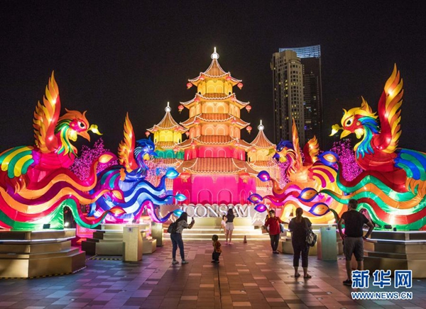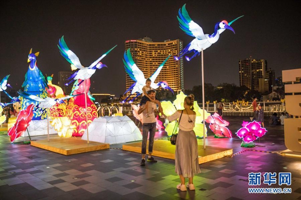 2月7日,顧客在泰國曼谷暹羅天地商場參觀花燈。[新華社記者 張可任 攝]