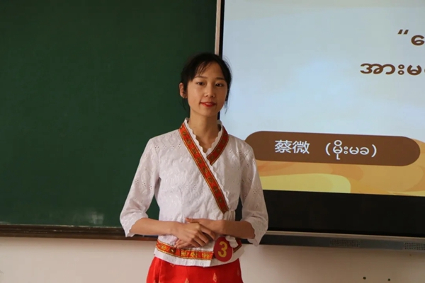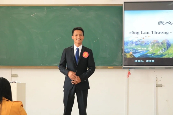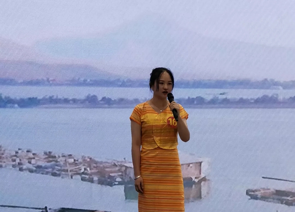 漢語組也在同日下午17:30在演播廳開展比賽,選手們的表現同樣精彩,選手們有的身穿漢服,有的身著傣族、白族等少數民族服飾,不同民族的同學都積極參與其中,各位選手的演講令現場觀眾耳目一新。他們精心準備演講內容,脫稿展示。在大銀幕上展現給觀眾的,不僅有俯瞰瀾滄江的壯闊景象,也有湄公河沿岸人們和諧的日常生活情景,還有綠水青山和人間煙火氣息,伴隨著背景音樂和選手的精彩解說,給觀眾展現了瀾湄合作下,瀾滄江、湄公河沿岸寧靜美好的景象。每位選手在圍繞主題展開演講的同時,也展現了自己的獨特風格:有的如講故事般娓娓道來,有的感情激昂,有的溫文爾雅,風采各異但都精彩滿滿。