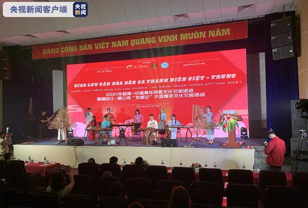 2021年越南-中國青年民歌文化交流活動17日在越南首都河內舉行,近百名越南青年學生演唱中越民歌、表演舞蹈,越南專家講解了有關民俗文化。