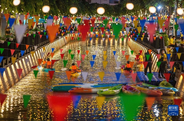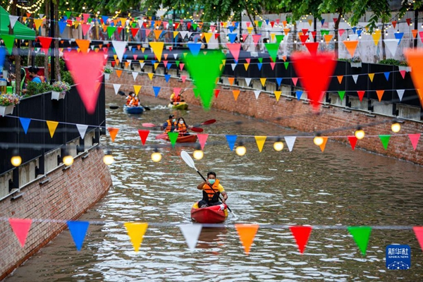 泰國曼谷10月15日起重新開放因新冠疫情關閉的翁昂運河步行街,允許民眾在遵守防疫措施的前提下參觀游覽并參加劃船活動。曼谷的翁昂運河曾是一處影響城市景觀的臟亂差地區,曼谷市政府從2014年開始對這里進行徹底整治,拆除違建、清理河道,并邀請城市景觀設計師對周邊社區進行改造升級。歷經數年治理之后,這里成為集居住、經商、文化集市、觀光于一體的濱河社區。