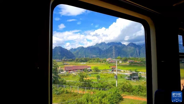 這是10月20日在中老鐵路首趟動態檢測列車上拍攝的老撾北部景致。新華社發(唐瑩攝)