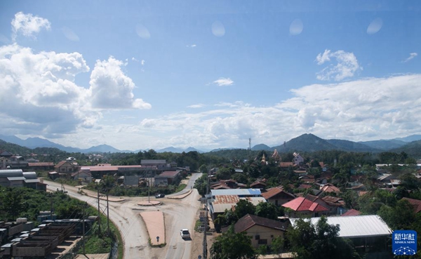 這是10月20日在中老鐵路首趟動態檢測列車上拍攝的老撾北部古城瑯勃拉邦北郊。新華社發(凱喬攝)