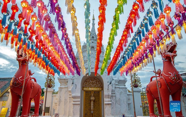這是10月25日在泰國南奔府哈利奔猜寺拍攝的各色燈籠。[新華社記者 王騰 攝]