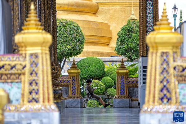 11月1日,一名工作人員在泰國曼谷大皇宮景區值班。[新華社記者 王騰 攝]
