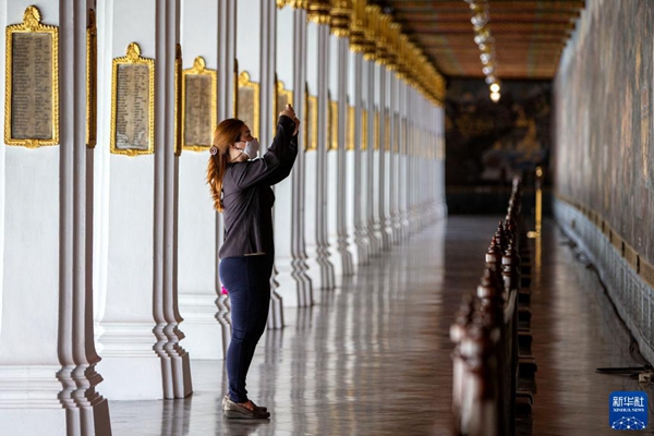 11月1日,一名游客在泰國曼谷大皇宮景區游覽。[新華社記者 王騰 攝]