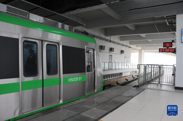 11月6日,當日首列輕軌列車在越南首都河內吉靈站等待出發。[新華社記者 陶軍 攝]