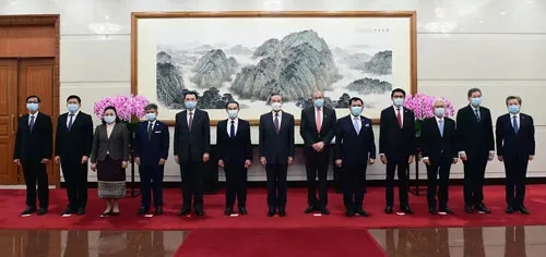 2021年11月14日晚,國務委員兼外長王毅在北京會見東盟國家駐華使節。