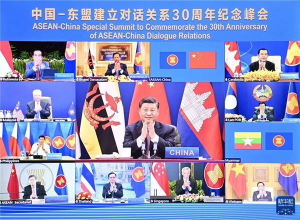 新華社北京11月22日電 國家主席習近平22日上午在北京以視頻方式出席并主持中國-東盟建立對話關系30周年紀念峰會。中國東盟正式宣布建立中國東盟全面戰略伙伴關系。