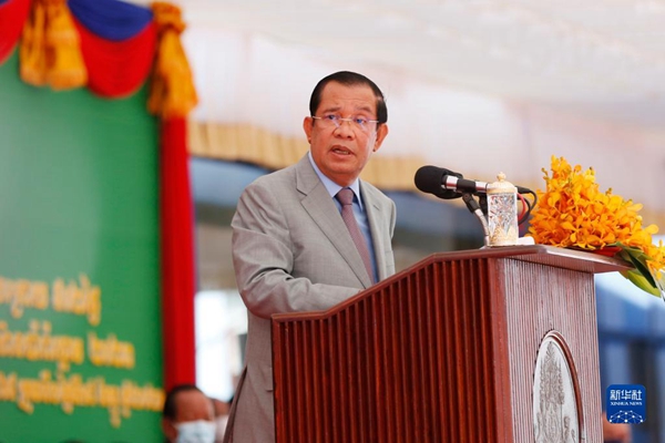 12月18日,柬埔寨首相洪森在金邊舉行的柬埔寨國家體育場啟用儀式上講話。新華社發(索萬納拉攝)