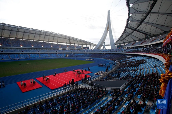 這是12月18日在柬埔寨金邊拍攝的柬埔寨國家體育場啟用儀式現場。新華社發(索萬納拉攝)
