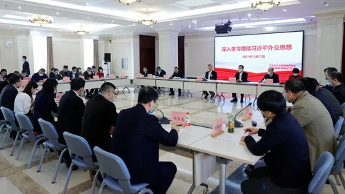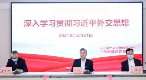 2021年12月21日,國務委員兼外交部長王毅赴習近平外交思想研究中心和中國國際問題研究院調研,并與研究中心和國研院代表座談。