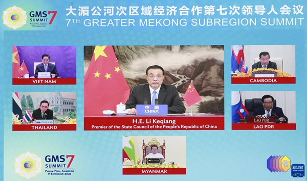 2021年9月9日,國務院總理李克強出席以視頻方式舉行的大湄公河次區域經濟合作(GMS)第七次領導人會議并表示,中國和湄公河國家是近鄰中的近鄰,親如一家人,各國應凝聚共識,增強政治互信,拓寬合作領域,提高合作水平,共同推動次區域的可持續和包容發展。此次會議發表了《第七次領導人會議宣言》,通過了《2030戰略框架》和《應對新冠肺炎疫情和經濟復蘇計劃(2021-2023)》等成果文件。2021年,李克強總理還與柬埔寨首相洪森、老撾總理潘坎、越南總理范明政、泰國總理巴育等通過視頻會晤、通電話、互致賀電等多種方式保持密切溝通。