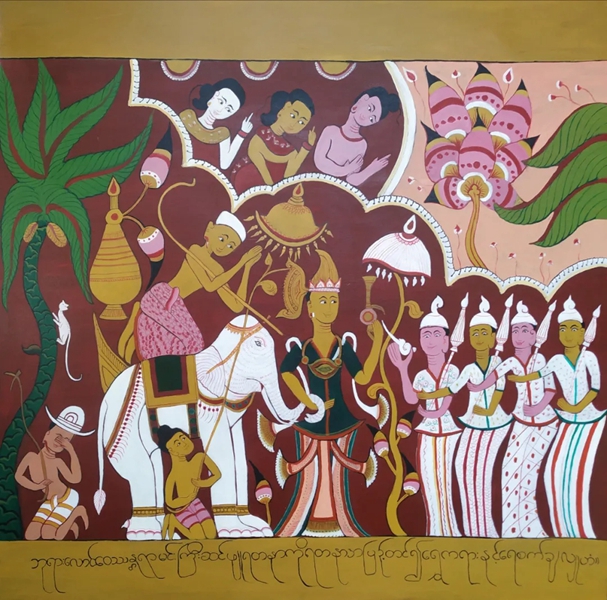 經中國駐緬甸大使館、緬甸宗教和文化部聯合推薦,緬甸兩幅藝術作品入選第九屆中國北京國際美術雙年展。參展作品充分展現了緬甸民族文化特色,表達了緬甸人民對幸福生活的美好向往,有力促進了中緬以及國際藝術之間的交流互鑒。
