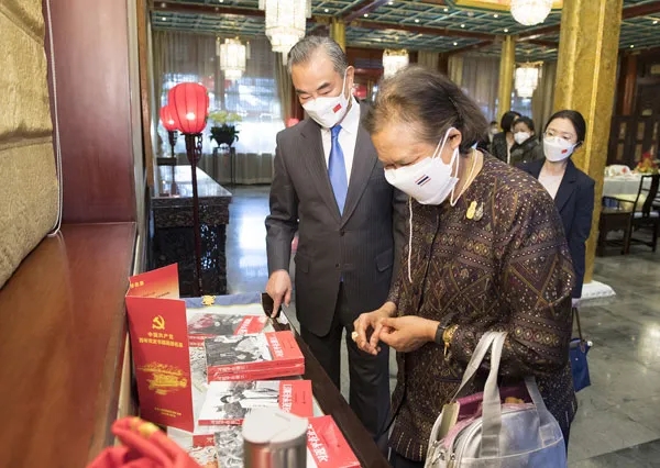 王毅贊賞詩琳通有意編纂出版介紹中國共產黨和中國新發展成就的書籍,表示要了解中國就要先了解中國共產黨。認知中國共產黨和中國人民的血肉聯系,就能認清中國未來的光明前景。王毅向詩琳通贈送了中共黨史書籍和畫冊。