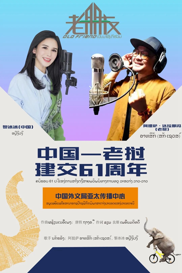 由中國外文局亞太傳播中心聯合青年詞作者良朋、作曲家唐軼、歌手黎冰冰(中國)和阿提薩·拉達那馮(老撾)推出的中老友誼主題歌曲《老朋友》于4月25日正式發布,致敬中老建交61周年。
