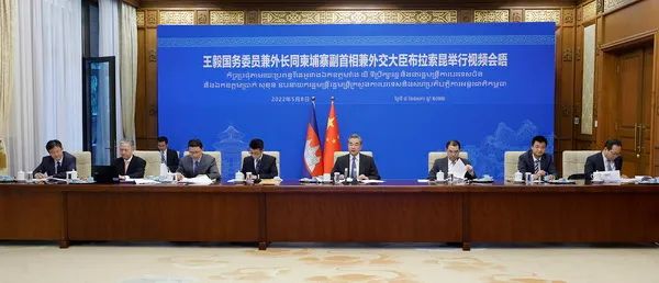 2022年5月8日,國務委員兼外長王毅同柬埔寨副首相兼外交大臣布拉索昆舉行視頻會晤。