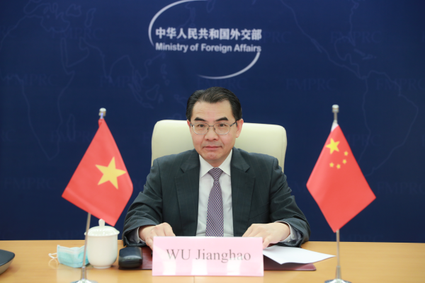 2022年6月27日,外交部部長助理吳江浩同越南副外長阮明羽舉行中越雙邊合作指導委員會秘書長視頻會晤,重點就雙邊合作指導委員會第十四次會議籌備工作全面對表,并圍繞兩國關系和共同關心的重要問題深入交換意見。