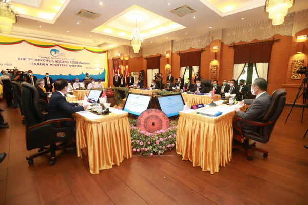 當地時間2022年7月4日,瀾滄江—湄公河合作第七次外長會在緬甸蒲甘舉行。國務委員兼外長王毅和緬甸外長溫納貌倫共同主持會議,老撾副總理兼外長沙倫賽、柬埔寨副首相兼外交大臣布拉索昆、泰國副總理兼外長敦、越南外長裴青山出席。