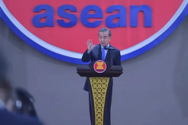 當地時間2022年7月11日,國務委員兼外長王毅在東盟秘書處就堅持開放的區域主義發表政策演講并答問。