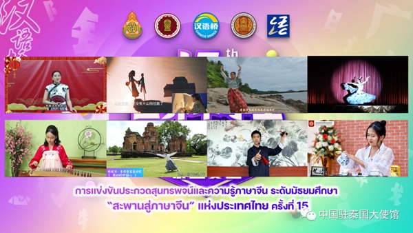 “漢語橋”世界中學生中文比賽泰國賽區活動為泰國學習中文的中學生提供一個展示中文綜合使用能力的舞臺。來自泰國168所中學的208名選手報名參加本屆比賽。晉級泰國賽區決賽的30名選手圍繞“漢字的魅力”“迎接高鐵時代”“唐人街的中國風俗文化”等話題,酣暢淋漓地展現出對中國文化的理解和高超的中文水平。決賽全程以線上方式進行,在筆試、主題演講、知識問答以及才藝展示等環節,選手們各顯其能,樂器演奏、舞蹈、歌曲、相聲、朗誦、皮影戲、川劇變臉、書畫和茶藝等表演精彩紛呈。