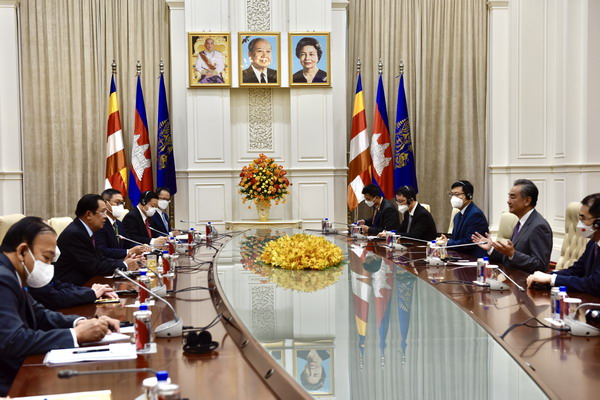王毅說,中柬高質量共建“一帶一路”不斷開花結果,展現出廣闊發展前景。雙方要牢牢把握共建命運共同體的方向,對兩國全方位合作不斷提質升級。期待中柬關系繼續走在中國同地區國家關系的前列。中方將繼續根據柬方需要足額提供疫苗援助,進口更多柬優質農產品,增開柬赴華航班,便利柬留學生返華復課。