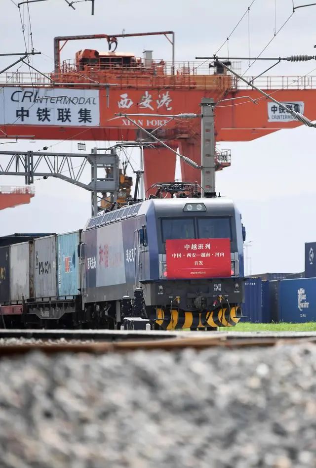 8月23日,陜西首趟中越國際貨運班列準備從西安國際港站出發開往越南河內。