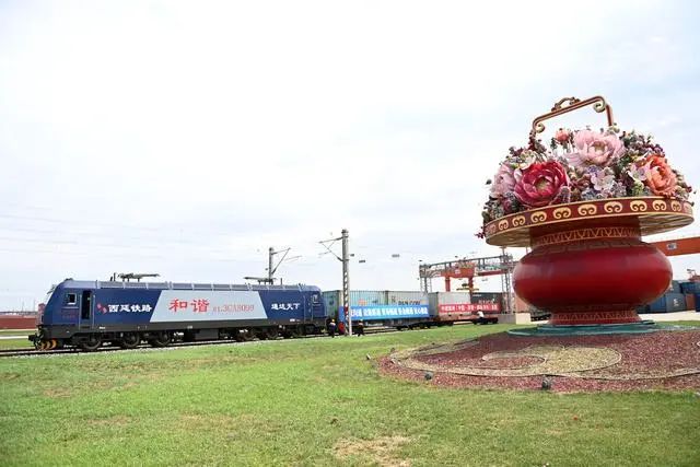 8月23日,陜西首趟中越國際貨運班列準備從西安國際港站出發開往越南河內。