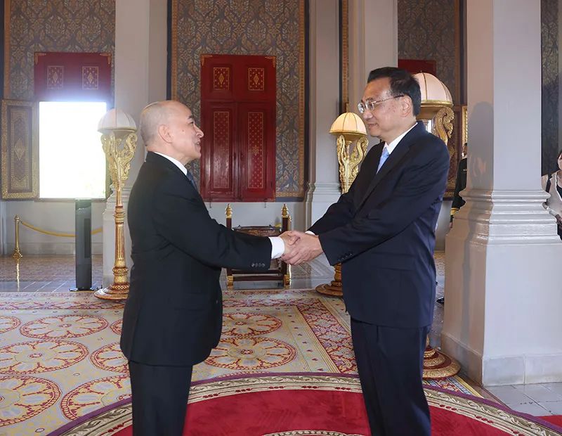 當地時間11月11日上午,國務院總理李克強在金邊王宮會見柬埔寨國王西哈莫尼。