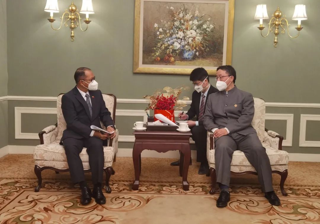2023年1月10日,外交部亞洲司司長劉勁松會見緬甸新任駐華大使丁貌瑞,就雙邊關系等交換意見。