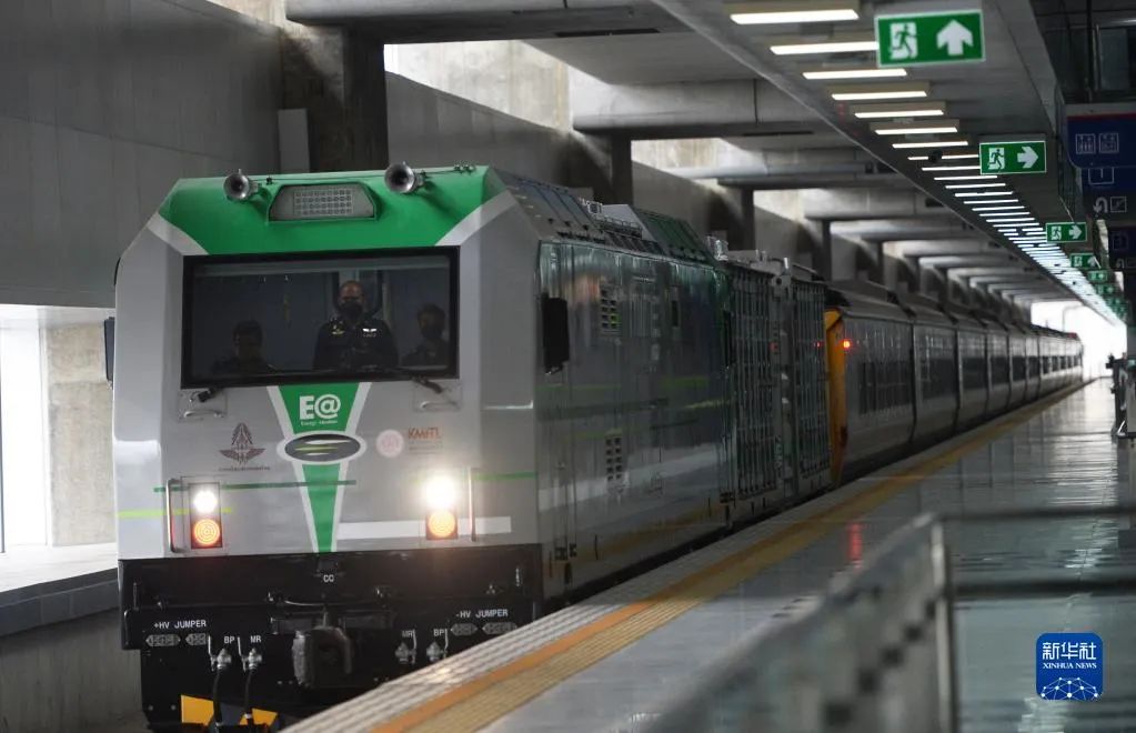 1月11日,在泰國曼谷,中國中車大連公司生產的電池動力機車駛入車站。新華社發(拉亨攝)