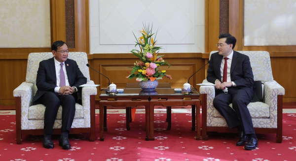 秦剛強調,和平發展是中國式現代化的鮮明特征之一。我們將堅持走和平發展道路,堅持互利共贏的對外開放戰略、親誠惠容的周邊外交理念,深化同包括柬埔寨在內的東盟國家的友好合作,共同捍衛國際公平正義,共同倡導要發展進步、團結融合,不要矛盾沖突、“脫鉤斷鏈”。