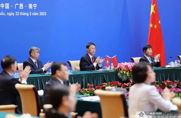 劉寧指出,一年來,在“十六字”方針和“四好”精神指引下,廣西與越南邊境四省積極落實習近平總書記和阮富仲總書記達成的系列重要共識和2022年新春會晤成果,有力推動經貿合作、互聯互通、疫情防控、邊境管控等領域交流合作取得新成效。2023年,廣西愿繼續與越南邊境四省一道,繼續貫徹落實好兩黨兩國最高領導人達成的系列重要共識,加強高層引領、鞏固政治互信,加強經貿合作、促進發展繁榮,加強交通建設、推進互聯互通,加強人文交流、夯實民意基礎,加強安全管理、維護邊疆安寧,攜手從地方層面推動新時代中越全面戰略合作伙伴關系健康穩定發展,為共建中國—東盟“五大家園”作出積極貢獻。