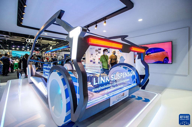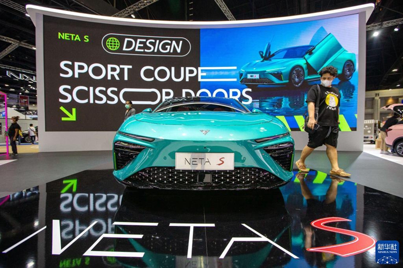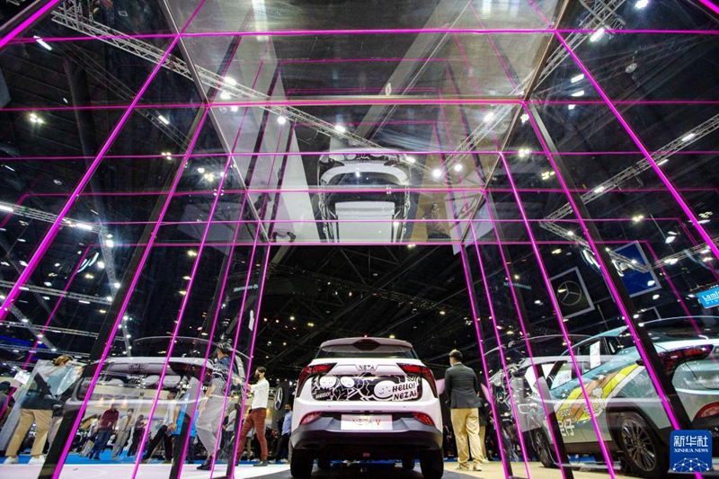 3月22日,觀眾在泰國曼谷國際車展上參觀哪吒S汽車。[新華社記者 王騰 攝]