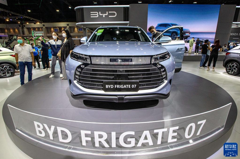 3月22日,觀眾在泰國曼谷國際車展上參觀比亞迪護衛艦07汽車。[新華社記者 王騰 攝]