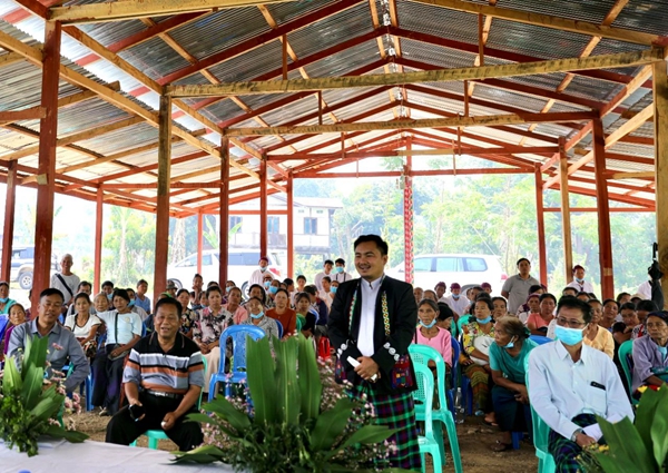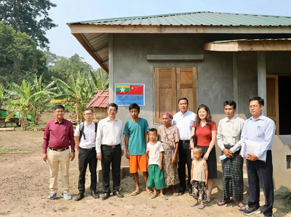 應緬方需求,中國政府于2021年1月通過緊急現匯援助支持流離失所者返鄉安置項目,在位于克欽邦密支那和歪莫鎮區的達巴巖村、楠桑巖村和達羅基村為返鄉村民重建家園,包括房屋重建修繕、配套供電、供水和水衛設施改造等內容。至今,克欽邦政府已在上述三個村利用中方援款重建房屋88套,修繕房屋25套,完成通電設施改造113戶,受益人群近1100人,共192戶家庭成功返鄉。譚書富參贊赴達巴巖村實地查看援款使用情況,了解克欽邦返鄉安置項目執行及未來規劃,并參與村民座談,深入聽取群眾訴求??藲J邦民族事務部部長覺敏凱陪同。
