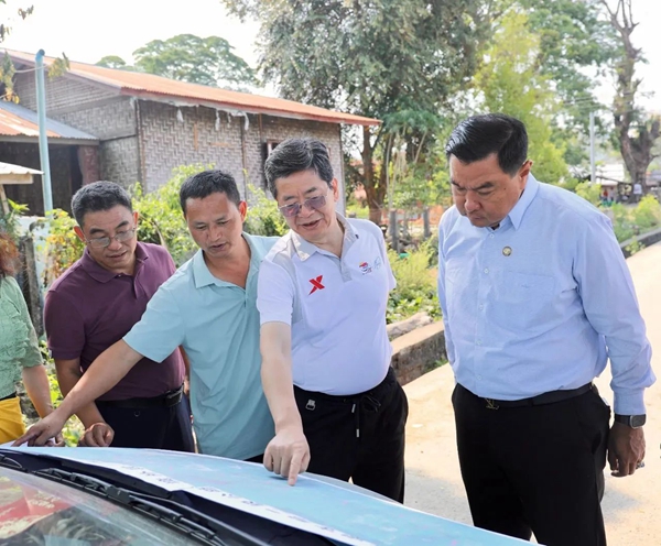 在瓦曉鎮區,譚書富參贊實地考察了騰沖—密支那公路使用和維護情況,與克欽邦當地及云南貿易商、物流企業交流,深入調研猴橋—甘般蒂口岸恢復開放后邊貿暢通面臨困難與挑戰。