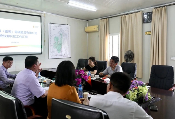 譚書富參贊一行還沿途考察了昂敏達水電站移民村,查看學校、醫院等設施使用情況,了解移民村過去十多年的發展,并與中資企業就克欽邦電力供應、小其培水電站運營現狀等合作項目進行交流。
