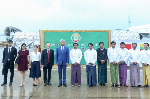 6月12日,中國政府援緬甸應對“穆查”風災首批人道主義物資運抵仰光國際機場。仰光省首席部長梭登、中國駐緬甸大使陳海、參贊歐陽道冰等赴機場迎接。