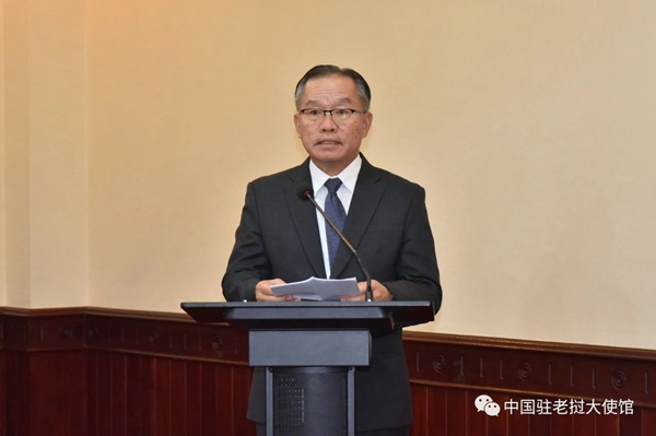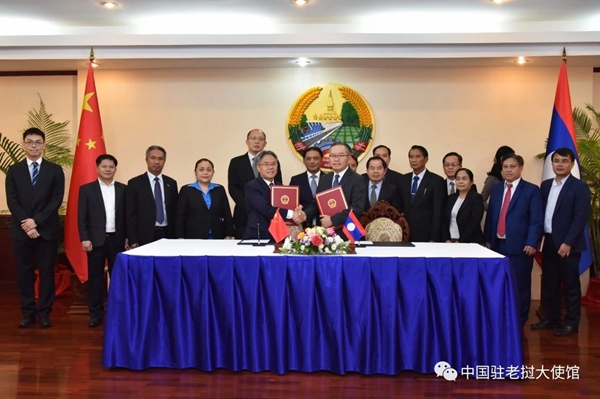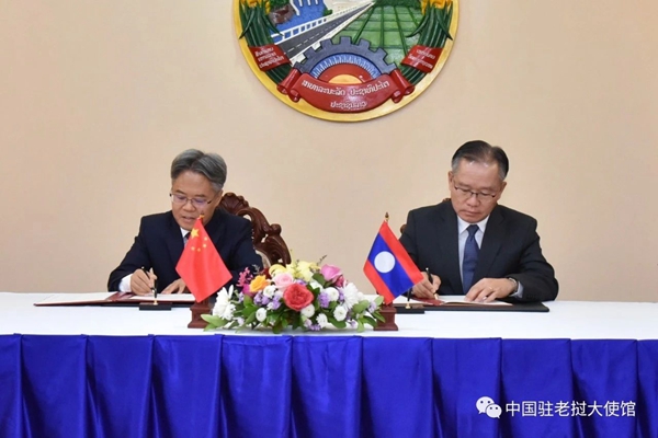6月26日,中國駐老撾大使姜再冬和老撾外交部副部長通潘簽署瀾湄合作專項基金2023年度老方項目合作協議并分別致辭。