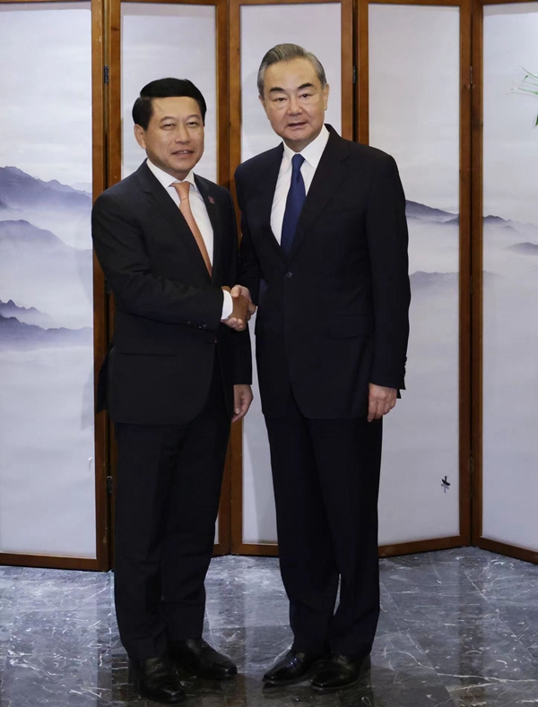2023年7月10日,中共中央政治局委員、中央外辦主任王毅在京會見老撾黨中央政治局委員、副總理兼外長沙倫賽。