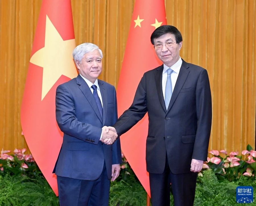 中共中央政治局常委、全國政協主席王滬寧20日在京會見越共中央書記處書記、越南祖國陣線中央委員會主席杜文戰。