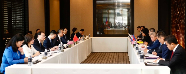 當地時間2023年8月12日,中共中央政治局委員、外交部長王毅在金邊會見柬埔寨候任副首相兼外交大臣、首相助理大臣宋金達。
