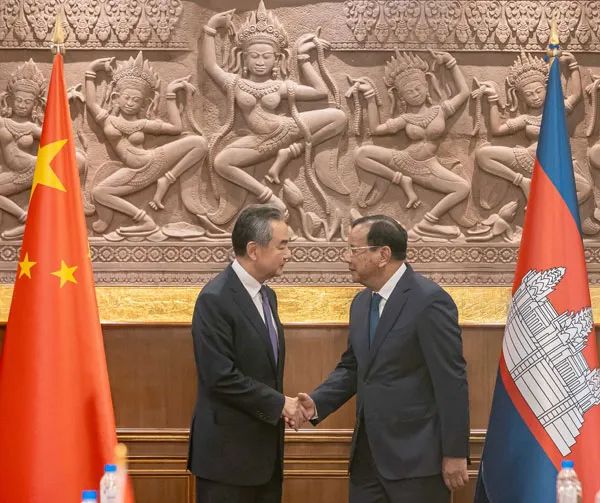 王毅說,此訪恰逢柬埔寨繼往開來、邁上新征程的重要時刻,中方對柬埔寨和中柬關系的未來充滿信心。今年以來,習近平主席分別會見西哈莫尼國王和洪森首相,開啟了中柬建交65周年和“中柬友好年”序幕,擘畫了新時代中柬命運共同體的宏偉藍圖。我們愿同柬方一道,沿著兩國領導人共同確定的方向,將中柬全面戰略合作伙伴關系不斷推向新高度,書寫中柬友好新篇章。