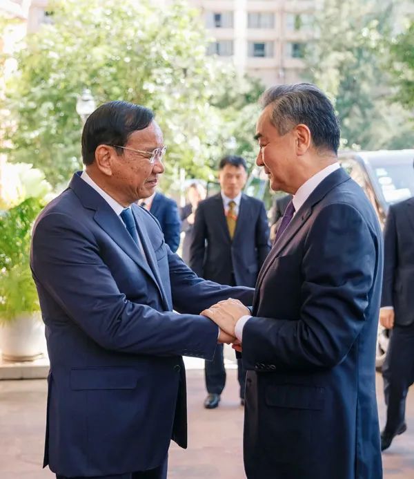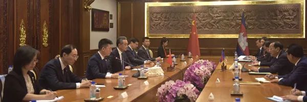 當地時間2023年8月13日,中共中央政治局委員、外交部長王毅在金邊會見柬埔寨副首相兼外交大臣布拉索昆。