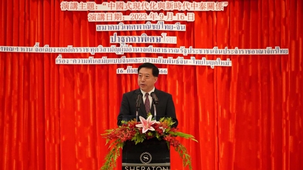 9月16日,中國駐泰國大使韓志強應泰華進出口商會邀請,以《中國式現代化與新時代中泰關系》為題,發表主題演講。泰華社會主要僑團代表及中泰媒體200余人出席活動。