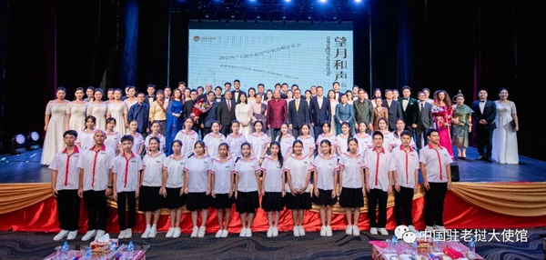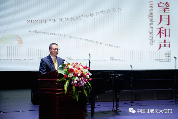 9月23日,中國駐老撾使館臨時代辦王暢出席“望月和聲—2023年‘天涯共此時’中秋合唱音樂會”并致辭。老撾黨中央政治局委員、副總理吉喬,新聞文化旅游部部長蘇莎婉、全國婦聯主席因拉萬、團中央書記蒙賽、中宣部副部長萬賽等出席。