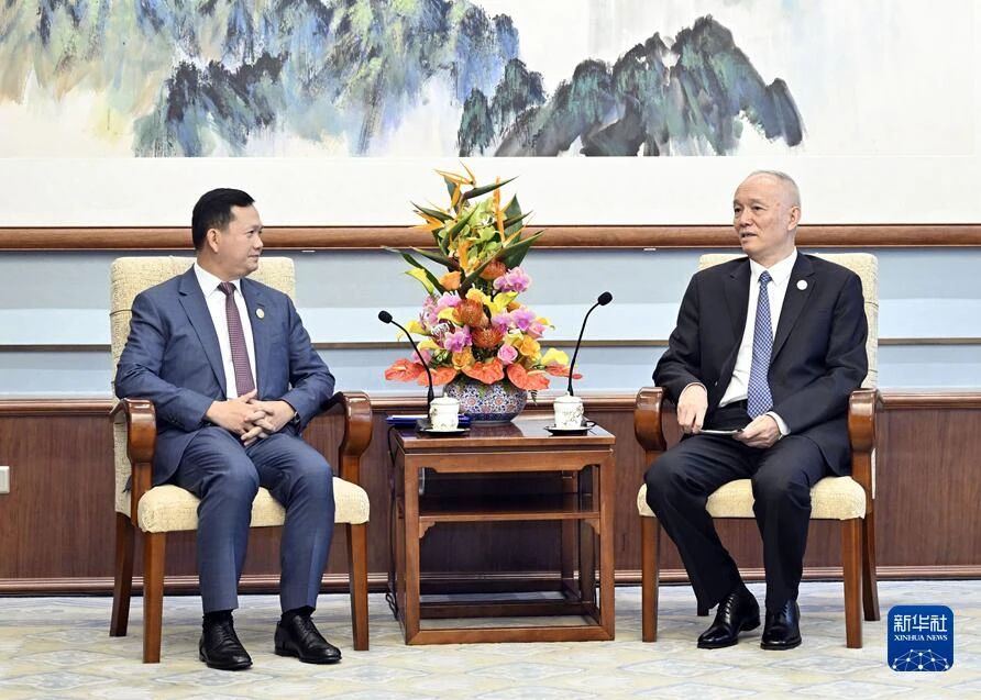 中共中央政治局常委、中央書記處書記蔡奇17日在北京會見柬埔寨首相洪瑪奈。