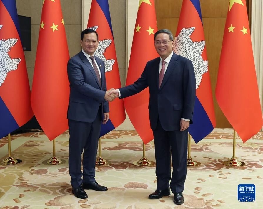 李強指出,中方愿同柬方共同落實好新版構建命運共同體行動計劃,推動兩國務實合作實現更加強勁、可持續發展。著力推進“工業發展走廊”和“魚米走廊”建設,加快建設鐵路、污水處理、光纜等基礎設施,打造中柬高質量共建“一帶一路”新的旗艦項目。拓展綠色產業、數字經濟等新興領域合作,助力柬埔寨加快工業化現代化進程。