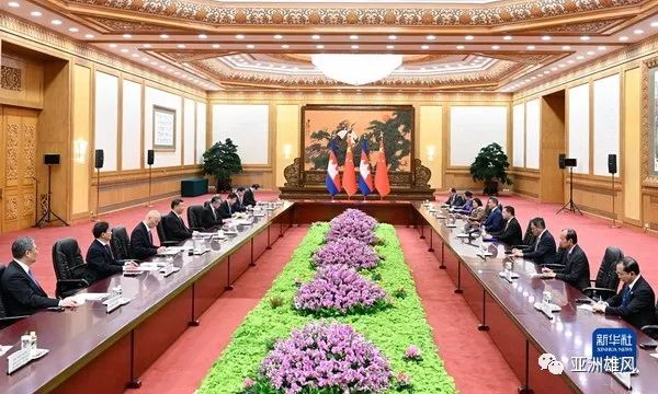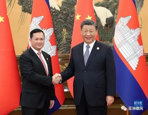 2023年10月19日上午,國家主席習近平在人民大會堂會見來華出席第三屆“一帶一路”國際合作高峰論壇的柬埔寨首相洪瑪奈。